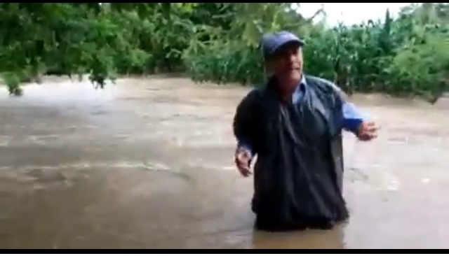 En el video, el campesino Juan Monroy denuncia que varias fincas, entre ellas la de su mamá Hermencia Ramírez, sufrieron cuantiosas pérdidas de cultivos como limón, plátano, cachaco, maíz, frutales y que además se ahogaron sus animales como gallinas y ovejas.